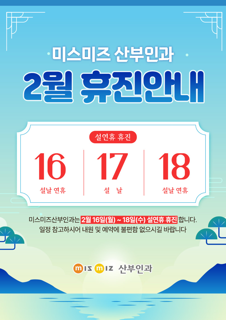 [공지] 미스미즈 2월 휴진안내