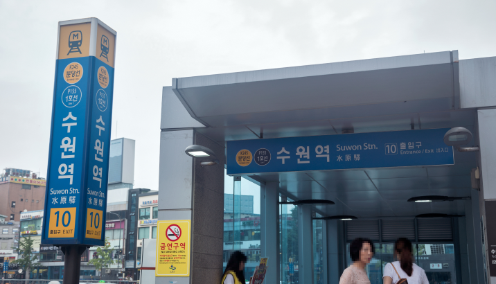 3. 수원역 10번 출구에서 10시 방향으로 걸어주세요.